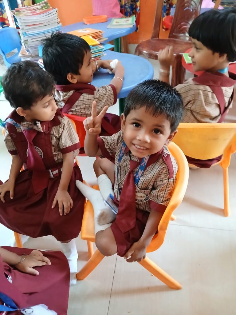 Spacious, well-ventilated, and child-proofed classrooms with play areas.